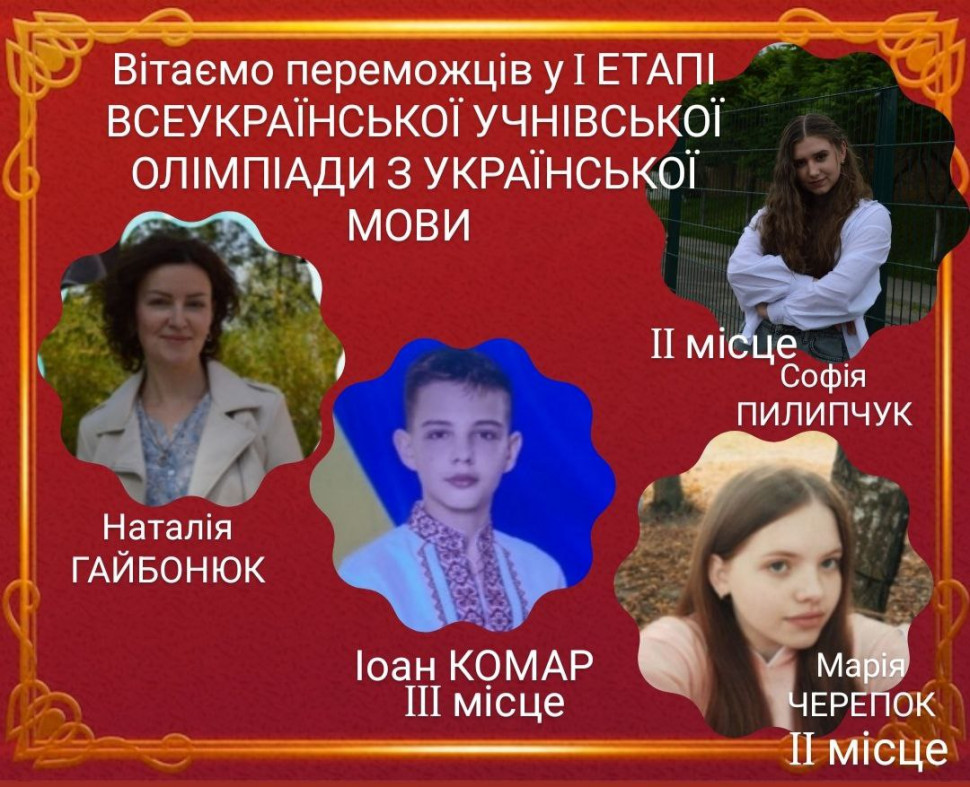 Вітаємо переможців I ЕТАПУ ВСЕУКРАЇНСЬКИХ УЧНІВСЬКИХ ОЛІМПІАД